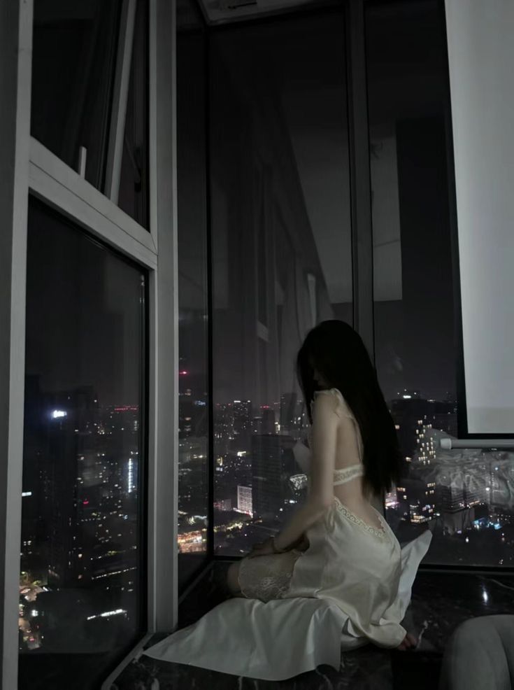 Cô Gái Đẹp Mặc Váy Ngủ Ngắm Đêm Thành Phố