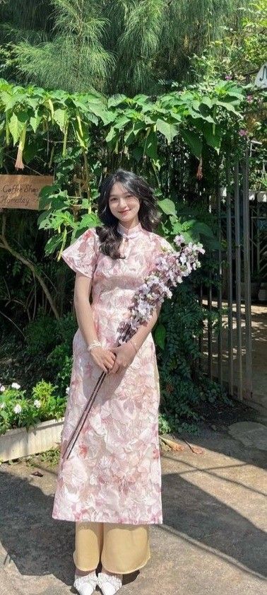 Cô Gái Xinh Mặc Áo Dài Trắng Giữa Khu Vườn Xanh Tươi