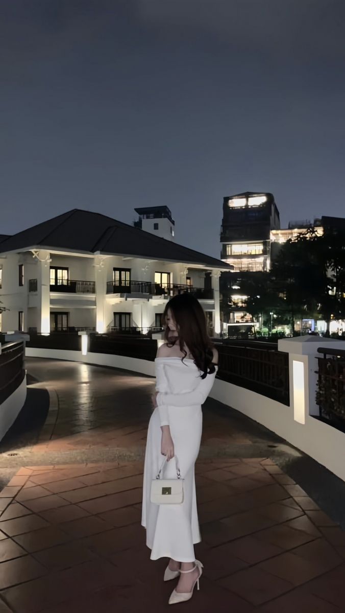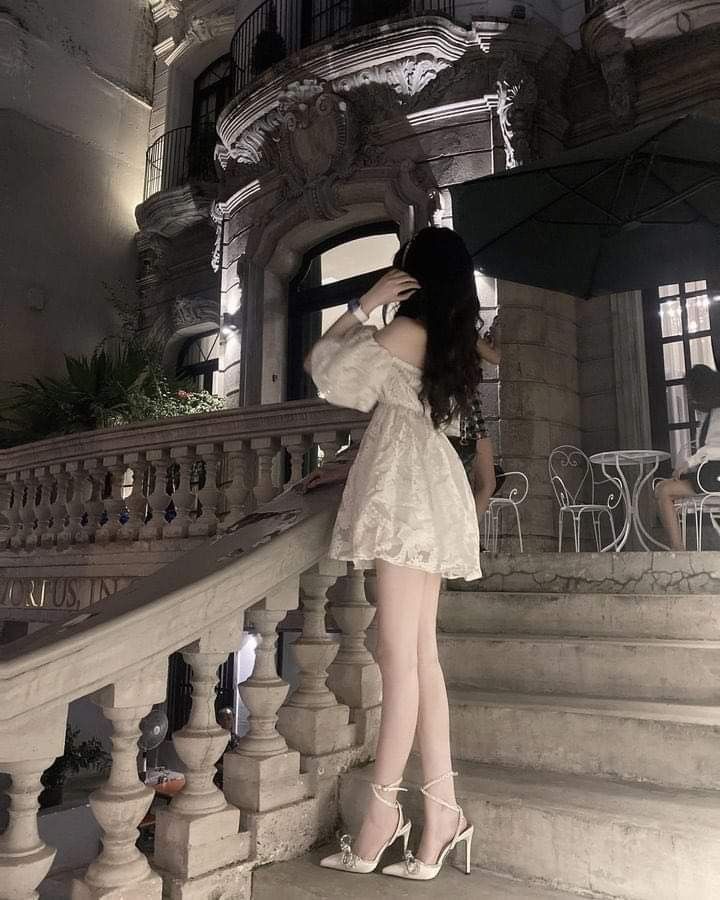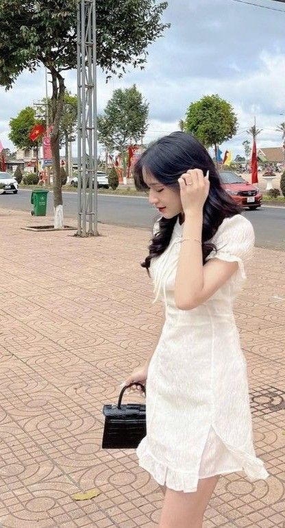 Ảnh gái mặc đầm trắng trên đường phố hiện đại