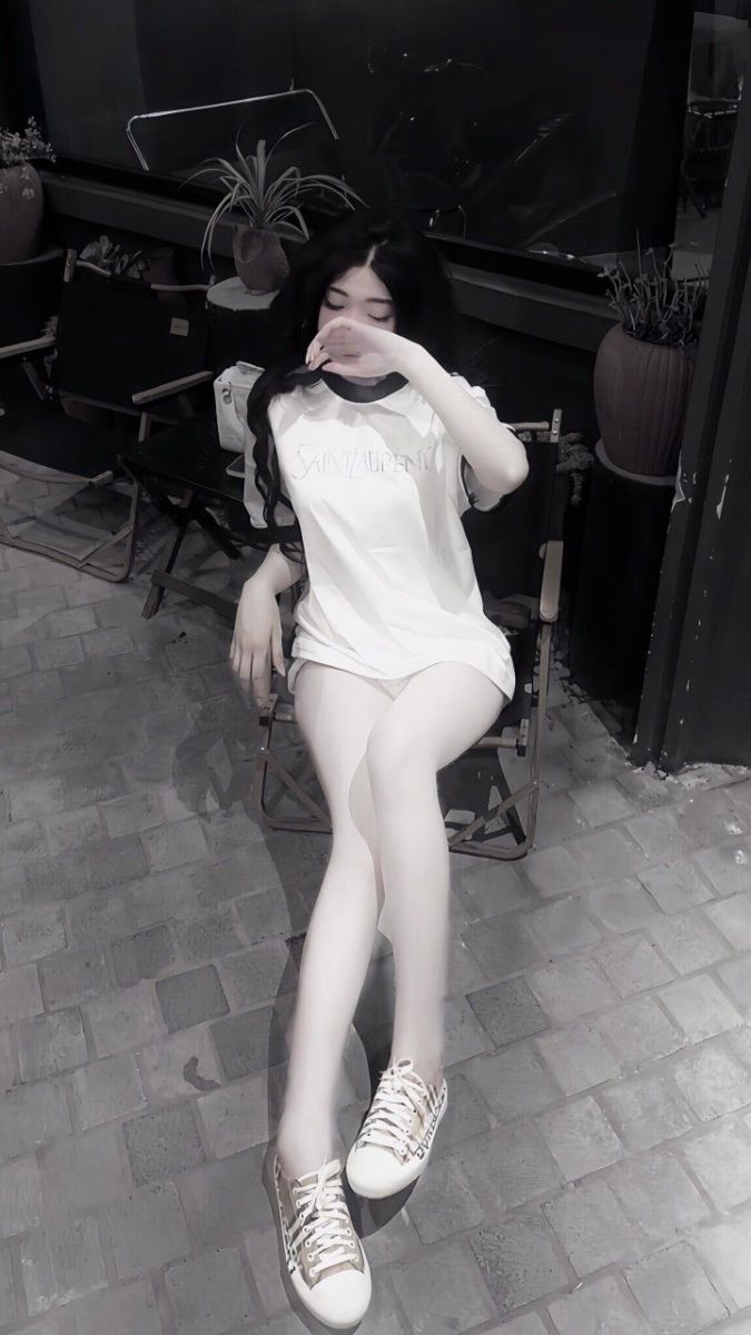 Ảnh gái trẻ mặc áo phông trắng đẹp tự nhiên