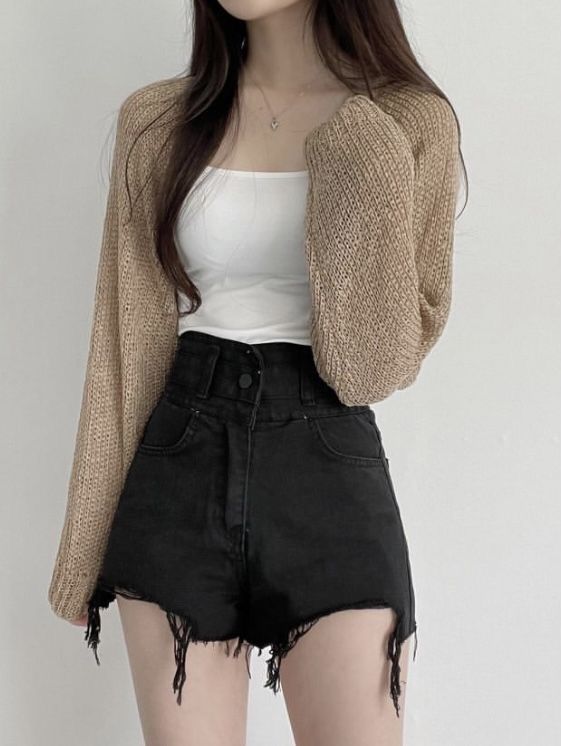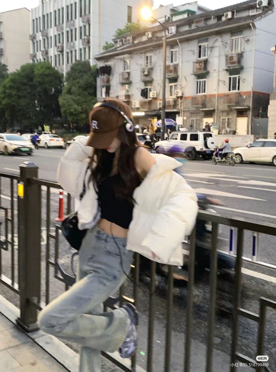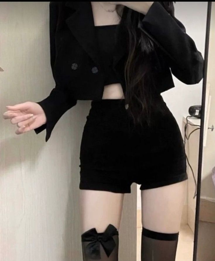 Ảnh Gái Trẻ Mặc Áo Khoác Trắng và Áo Crop Top Đen Đẹp