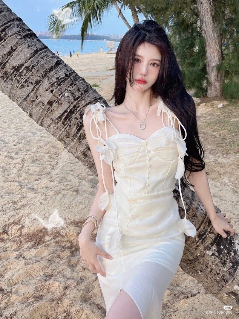 Gái xinh mặc đồ trắng tại bãi biển tuyệt đẹp