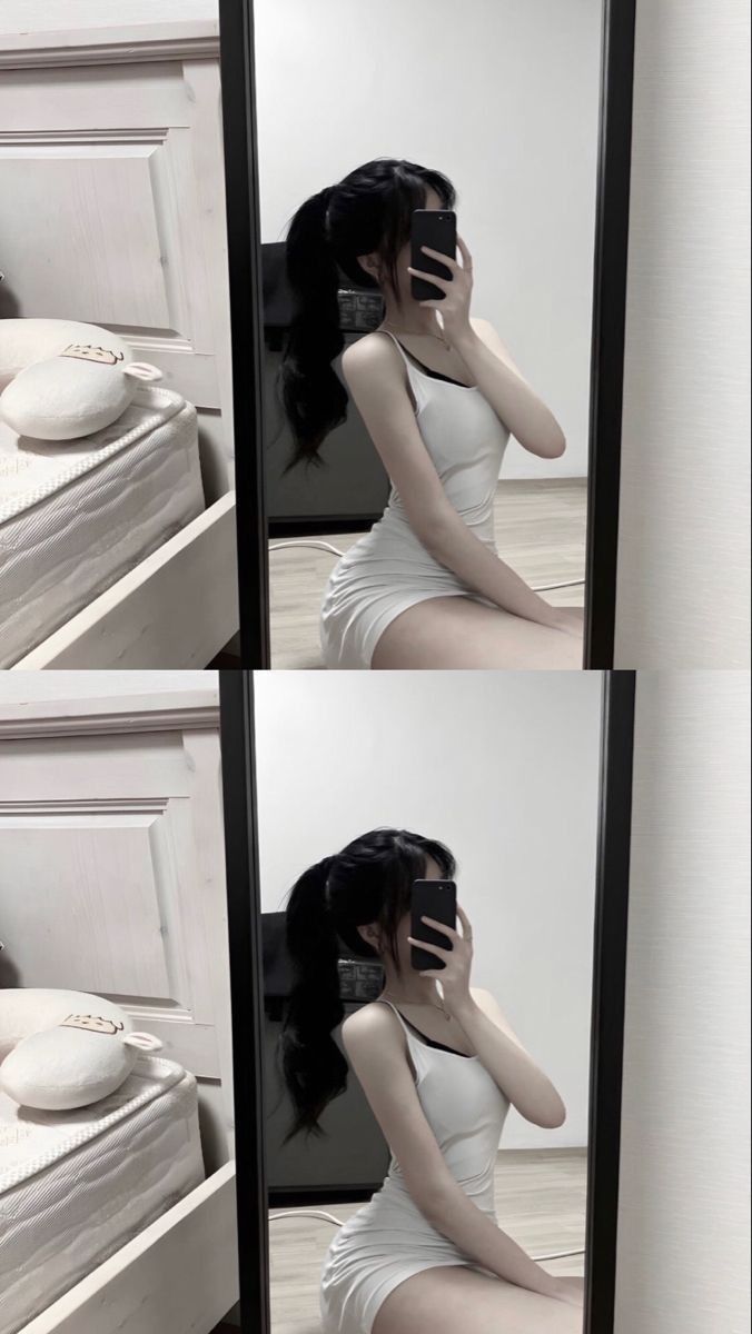 Gái xinh mặc váy xám chụp selfie tự tin trong gương