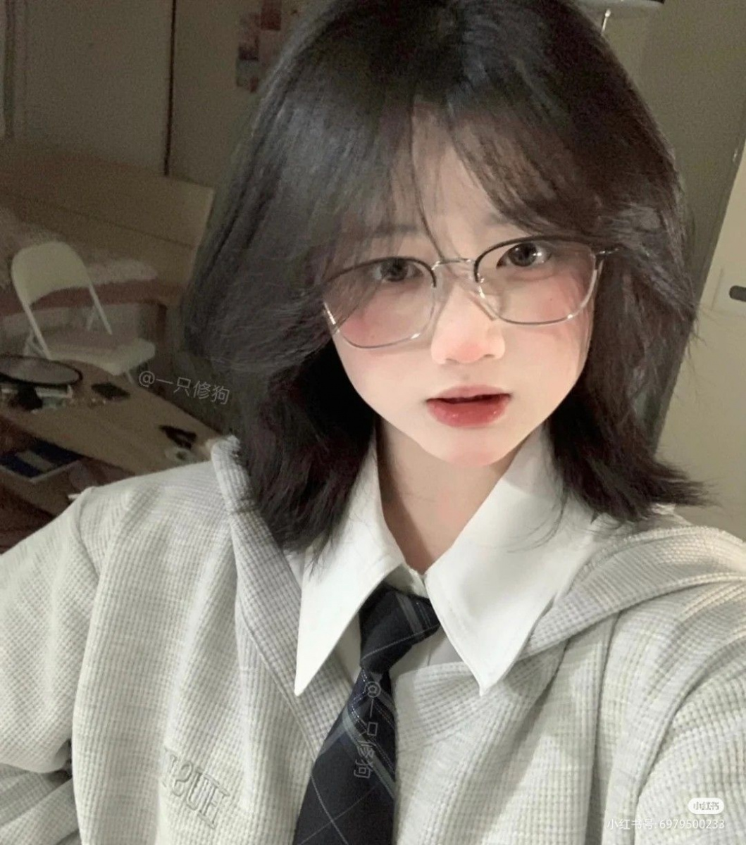 bé gái xinh đẹp Cổ áo Tóc đen Tóc mái Tóc ngắn Hàm Môi anh gái Kính mắt Ảnh chụp Tóc Kính Hoạt hình Chăm sóc thị lực Kiểu tóc Thời trang con gái