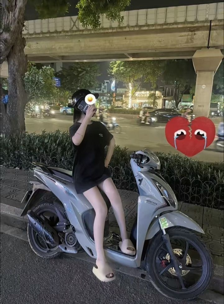 Gái che mặt diện áo phông oversized và sandal đen giữa phố