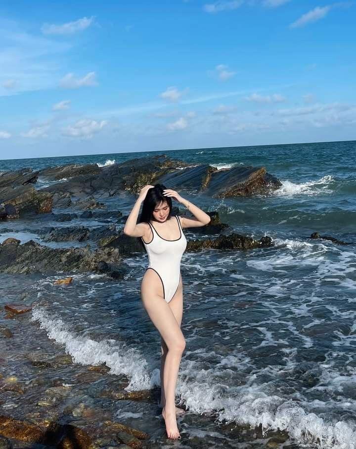 Gái đẹp mặc váy trắng bên bờ biển, phong cách nhẹ nhàng