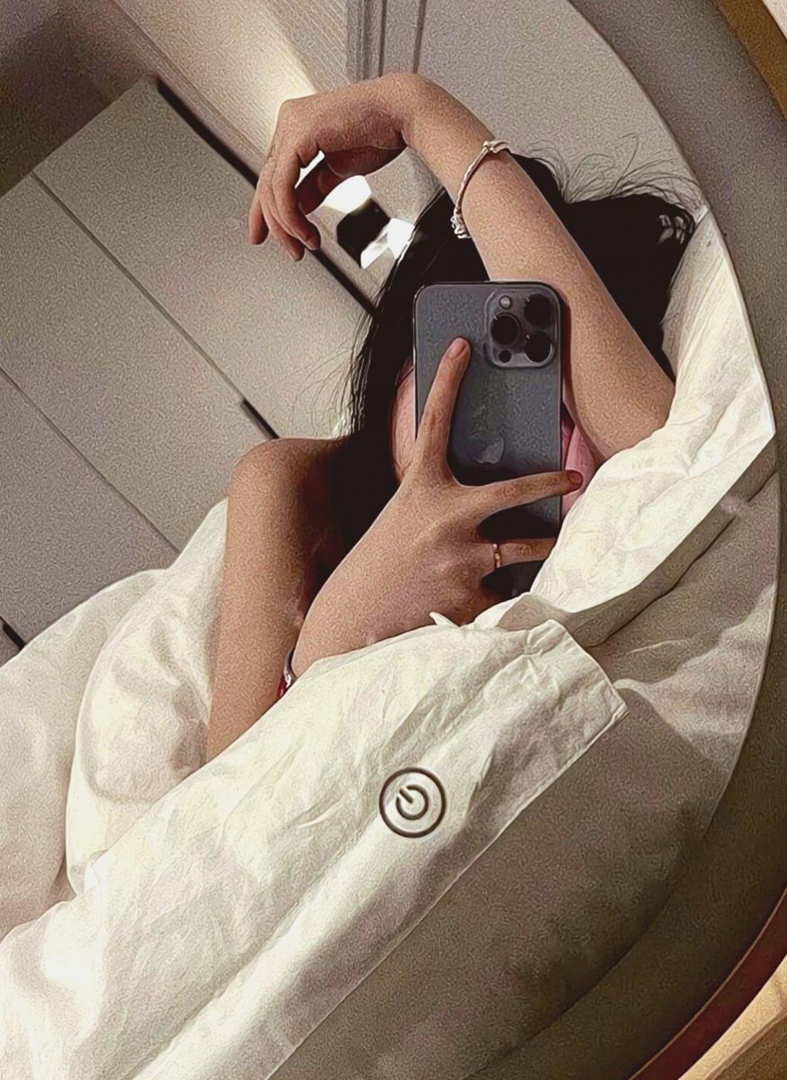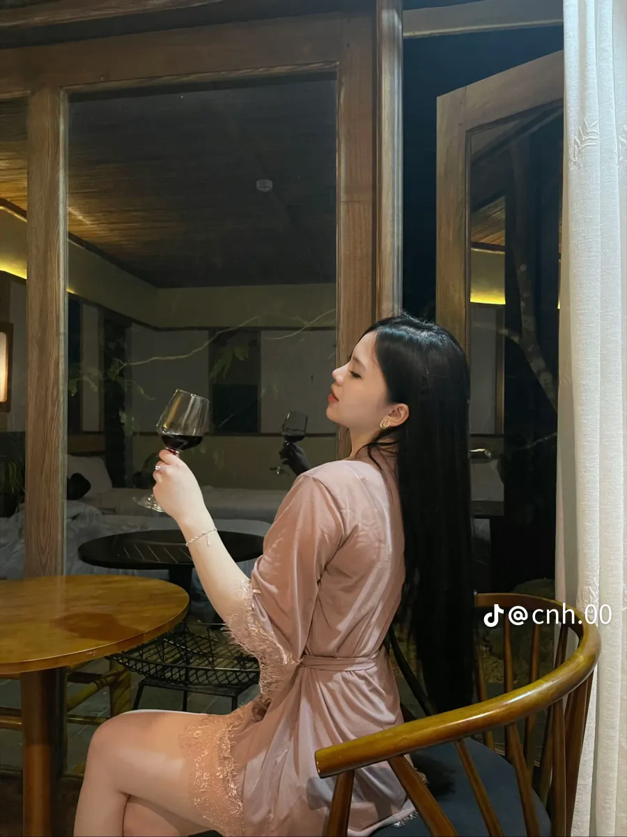 Ảnh gái xinh mặc váy ngủ hạnh phúc