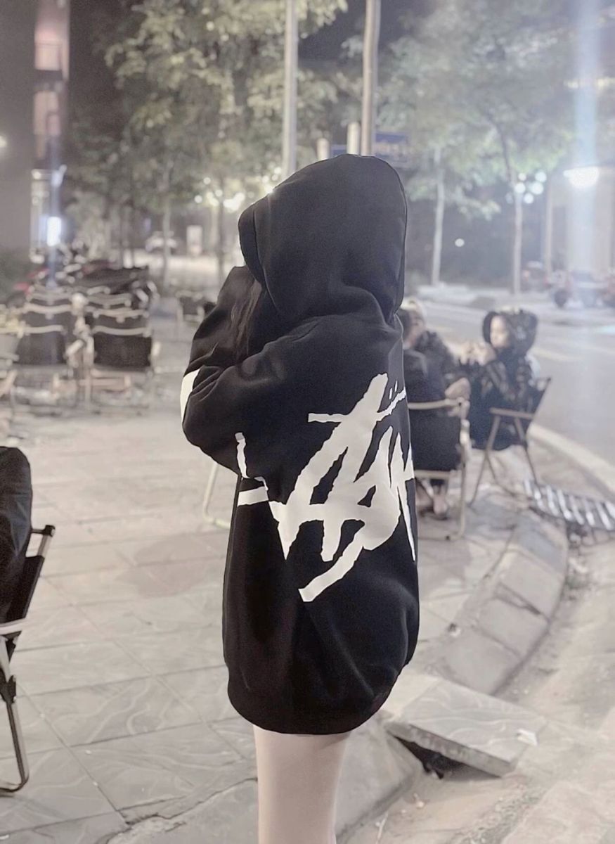 Cô gái mặc áo hoodie đen giữa phố đêm