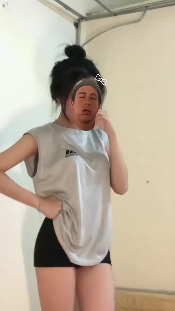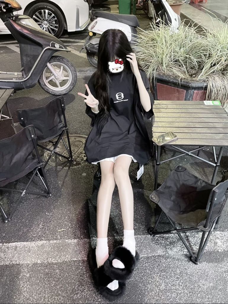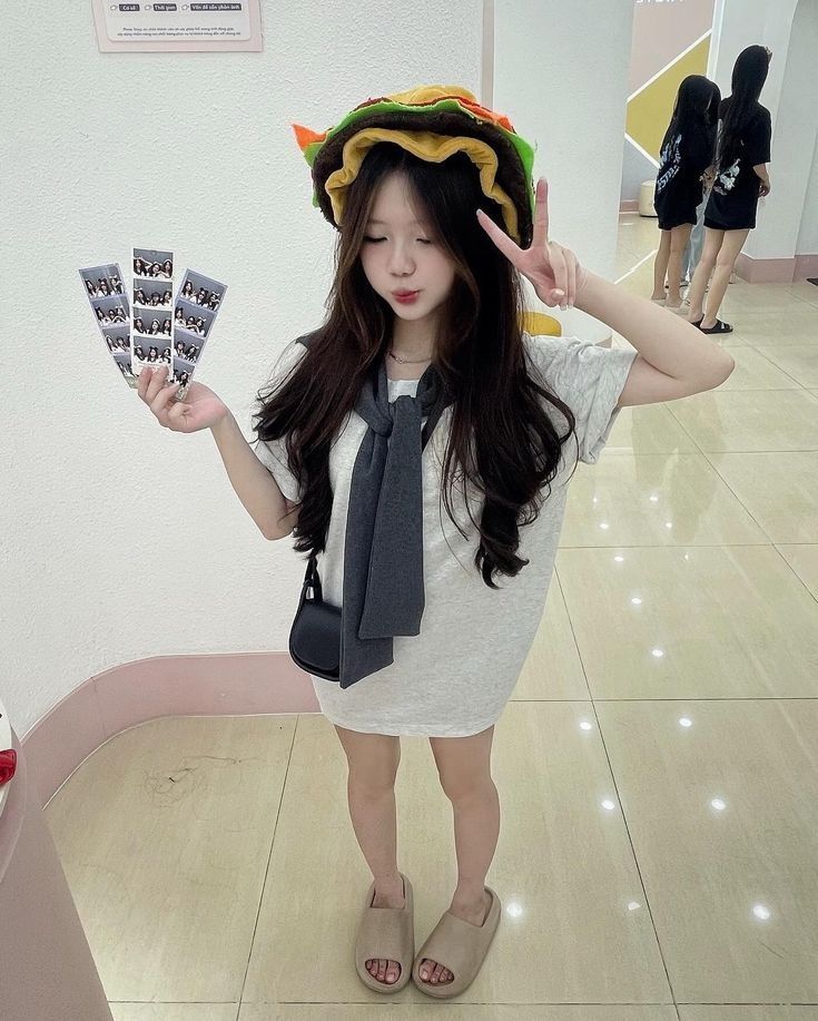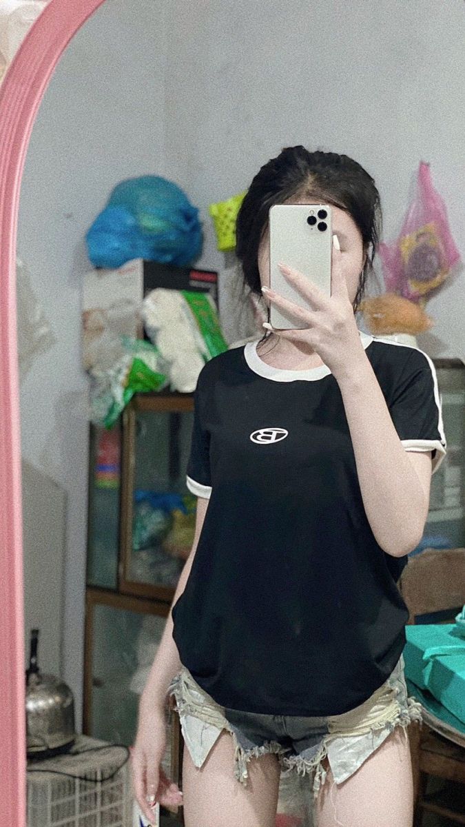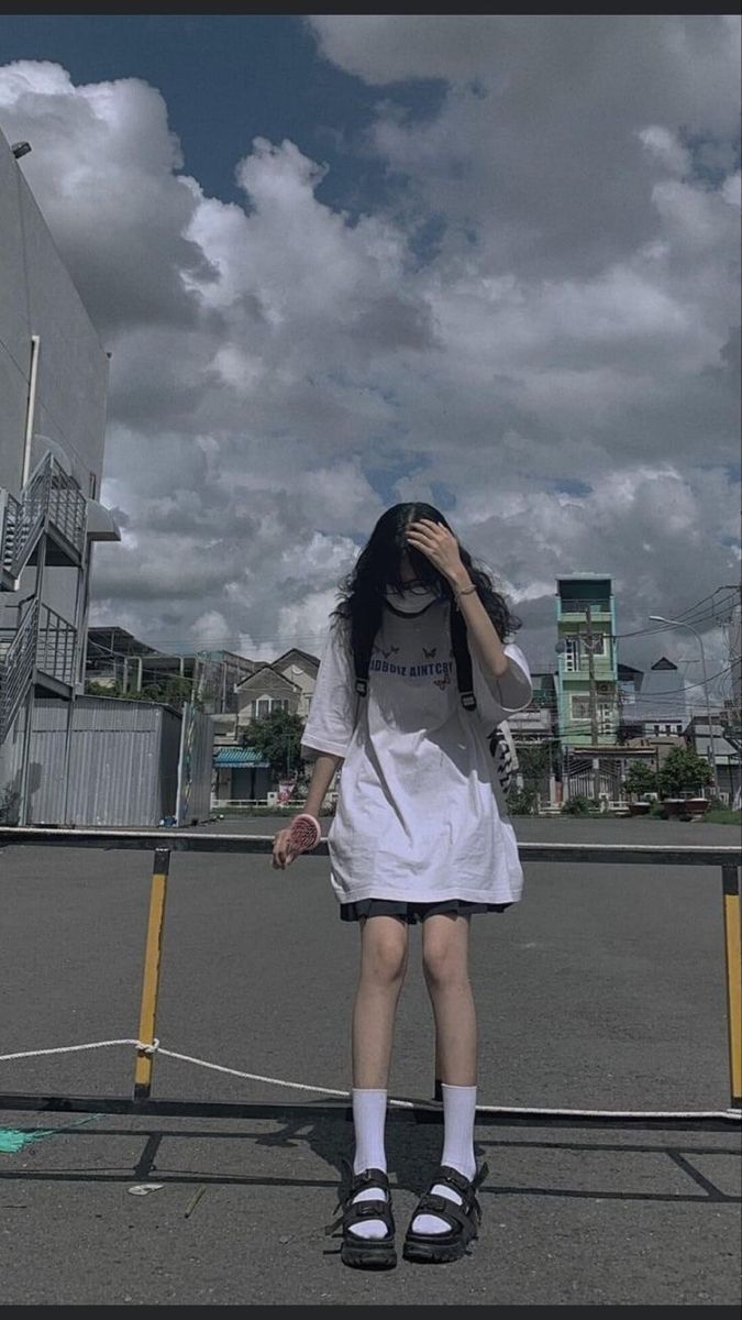 Ảnh gái trẻ mặc áo thun rộng và quần short