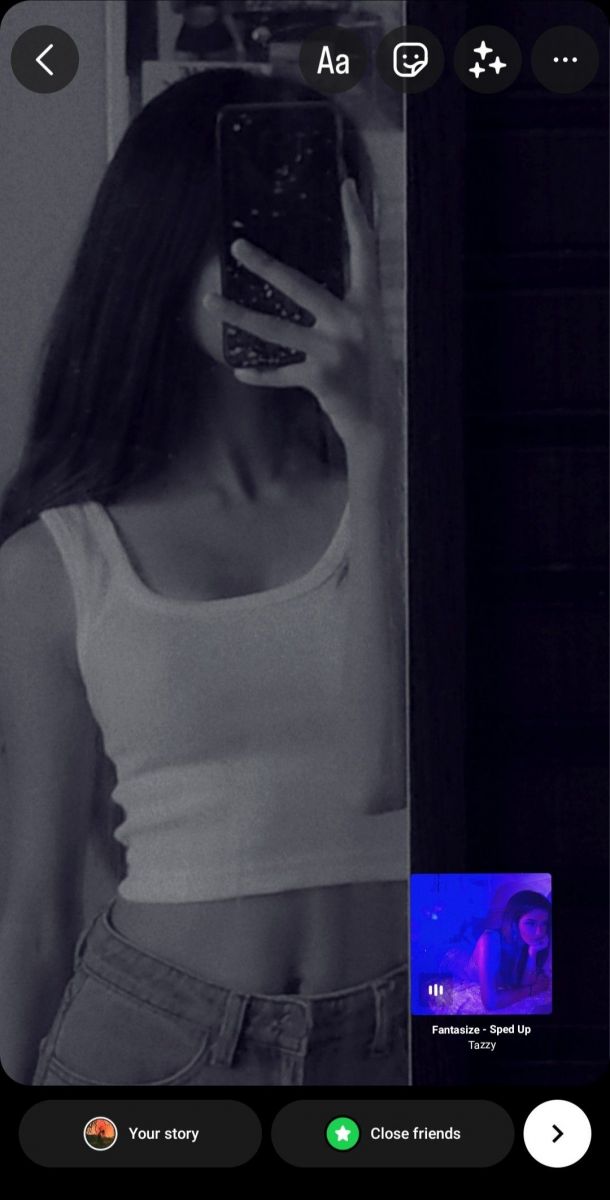 Cô gái trẻ mặc áo tank top trắng và quần jeans chụp ảnh tự sướng