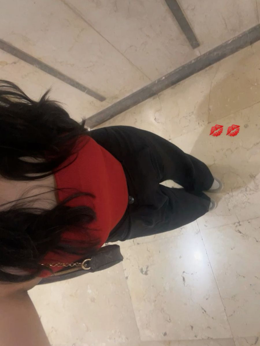Gái xinh trong áo đỏ và quần đen chụp hình tại địa điểm sang trọng