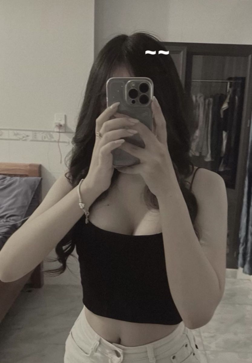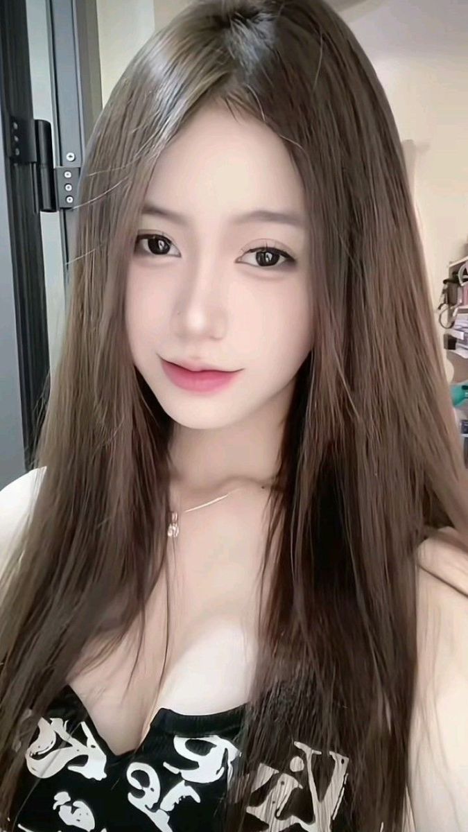 Gái xinh lộ hàng với ngực to, tóc đen quyến rũ
