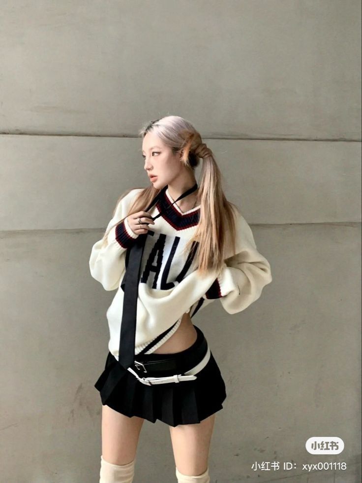 Anh Gái Quyến Rũ Với Áo Len Trắng Oversized Và Váy Xếp Tầng