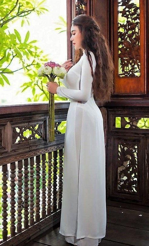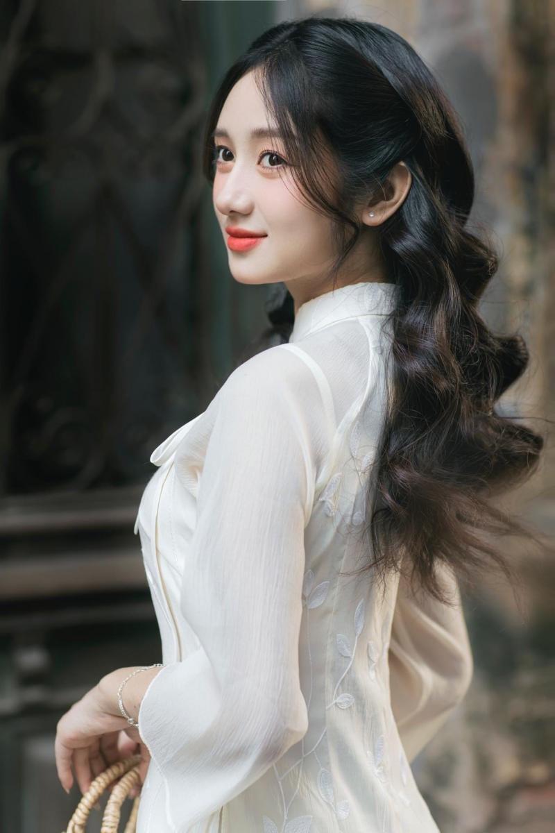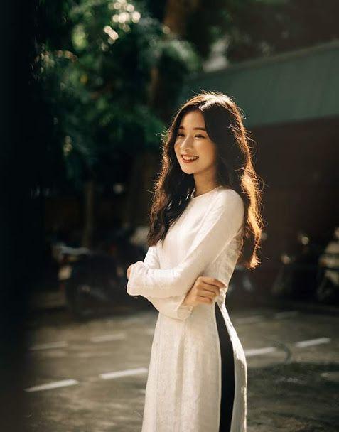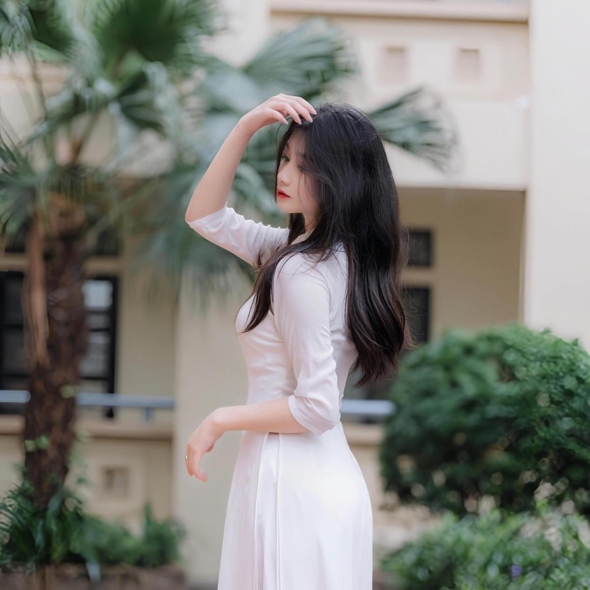 Gái xinh áo dài trắng trong bộ đồ xinh xắn