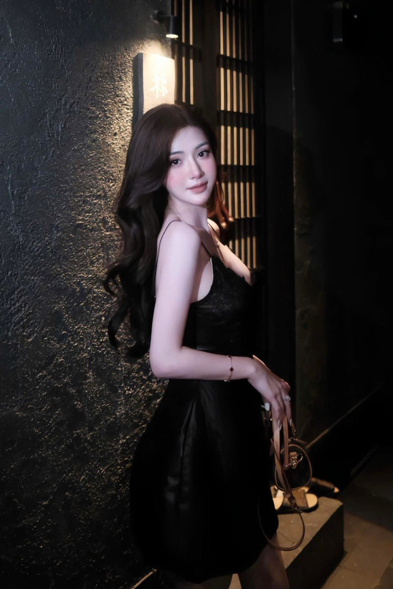 Gái xinh trong chiếc váy đen bên hồ bơi sang trọng