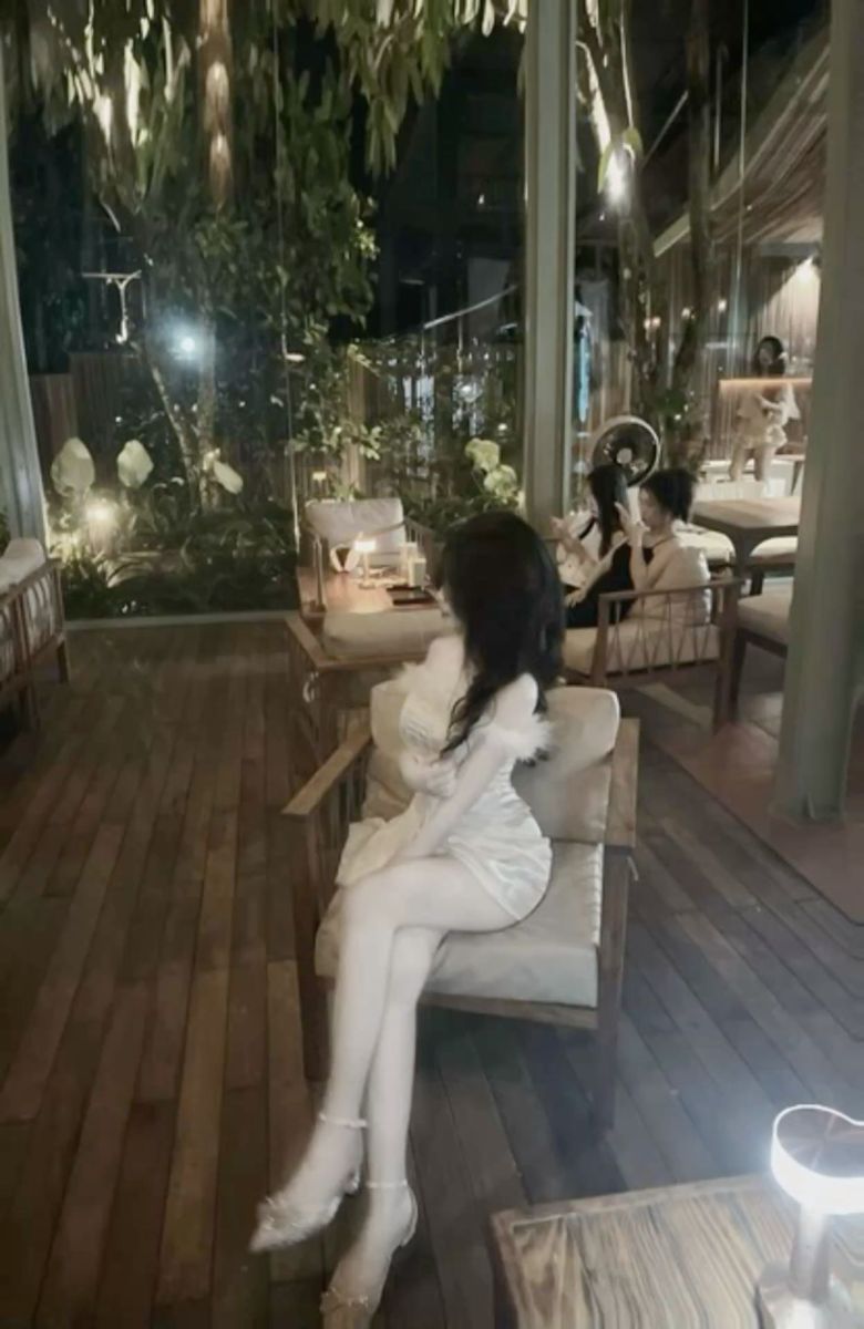 Gái xinh ảnh thật bên ghế đỏ ngoài trời