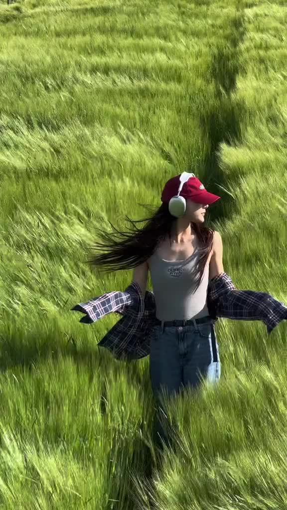 Ảnh gái trẻ mặc trang phục màu đỏ giữa thiên nhiên xanh tươi